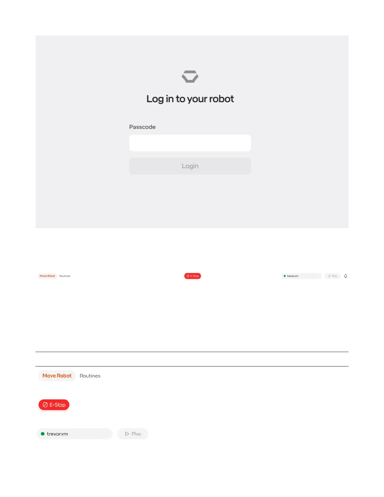 Robot Menu See status of current robot and access