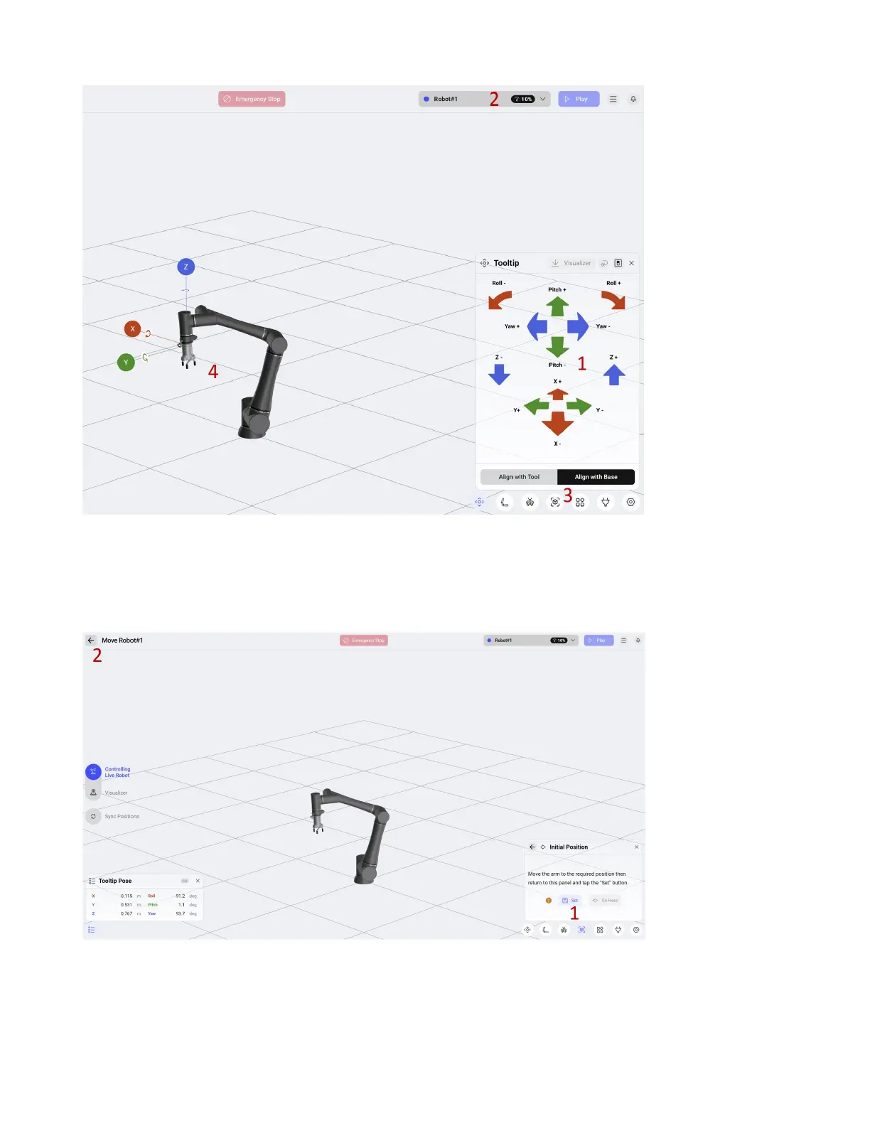 1. Jog the robot to the desired position using the arrows.