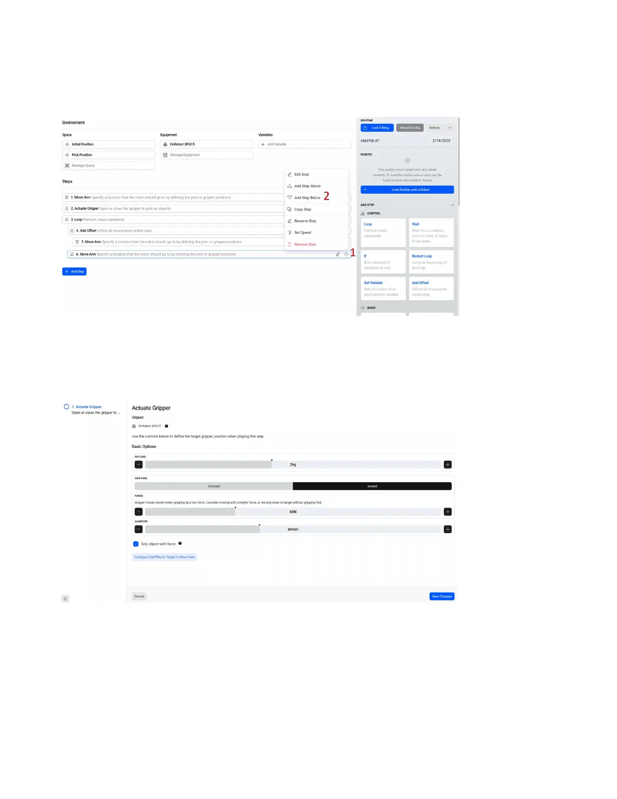Congure the tool as shown, which will close the tool on a part with 80N of force. Select Save Changes.