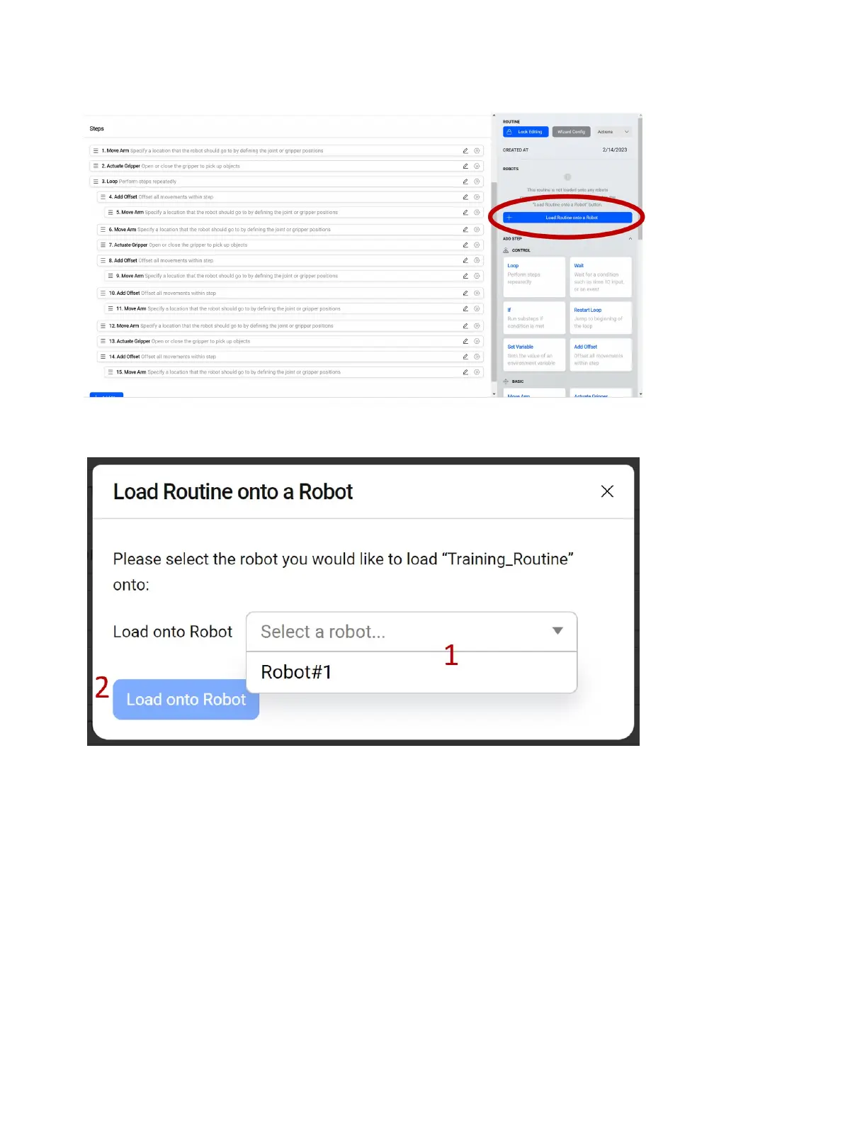 1. Select the robot to load the routine onto under Load onto Robot, there will likely only be one.