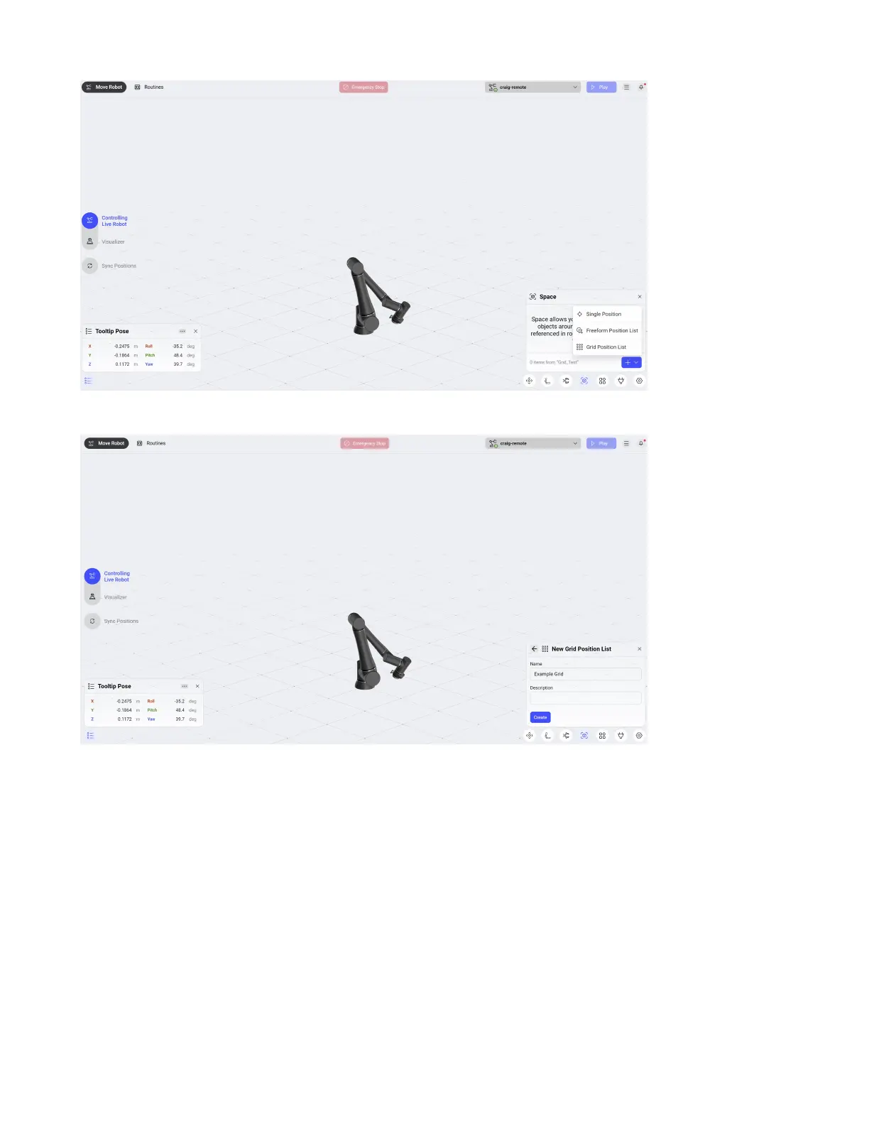 To create a grid, go to the Move Robot area, go to the space (square icon) and select Grid Position List.