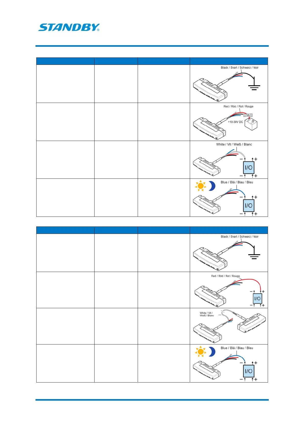 Red Power supply 10-30 V DC via a 5 A fuse