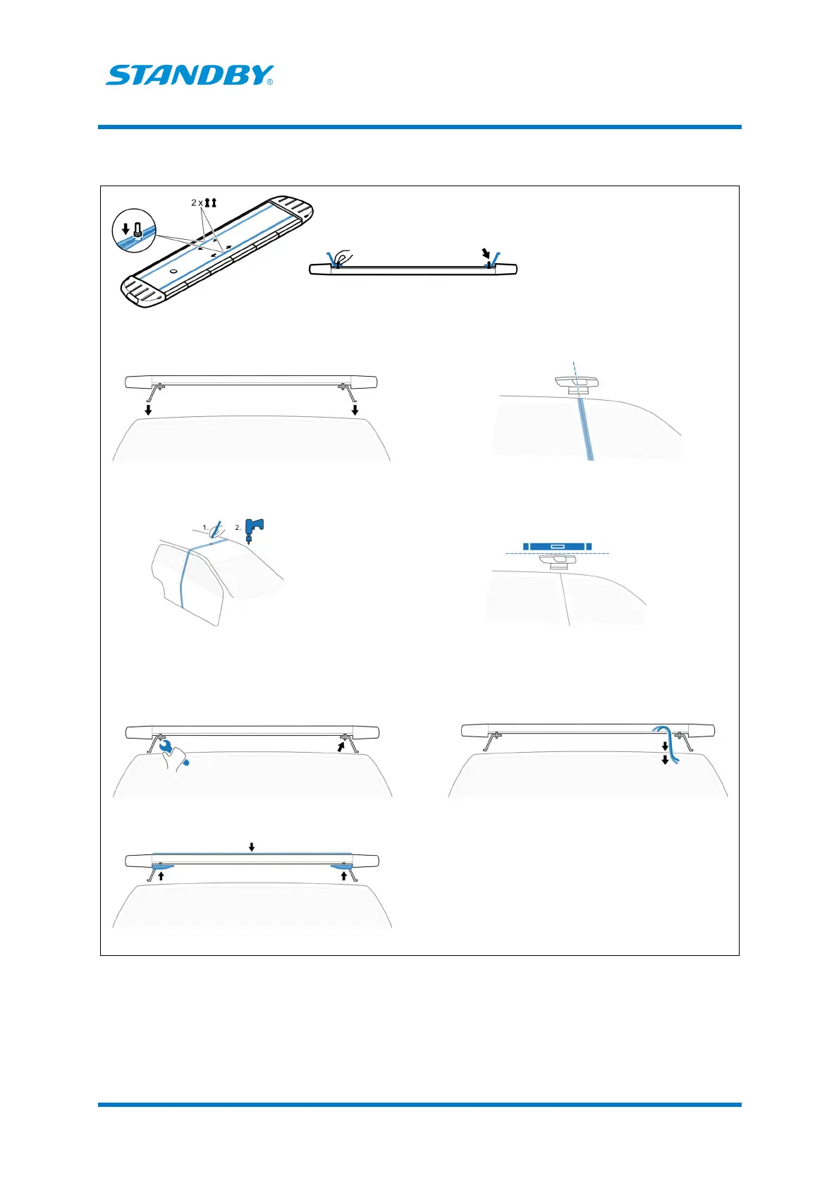 1. Use fixing screws, by hand, to attach the roof brackets on the t