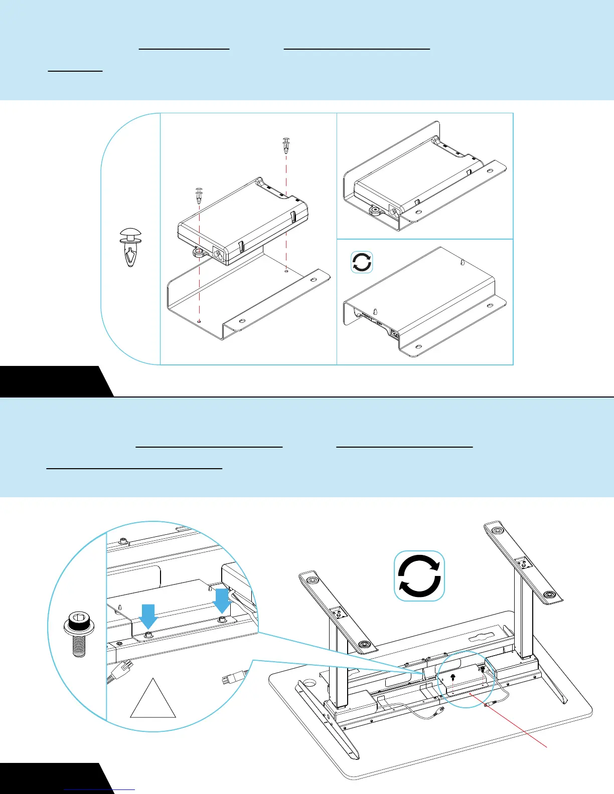 StandDesk PRO - Assembly Step 10: Securing Control Box; Insert Control Box; Assembly Step 11: Attaching Control Box Holder; Mount Holder to Slat