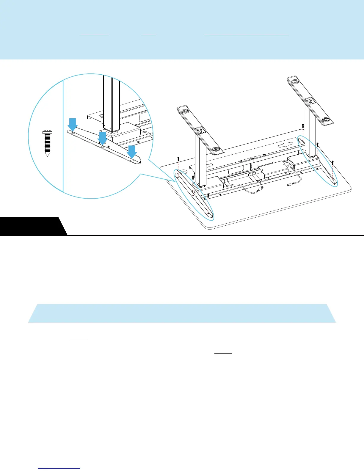 StandDesk PRO - Assembly Step 12: Attaching Frame to Top; Secure Frame to Desktop; Pro Tip: Drilling for Tops