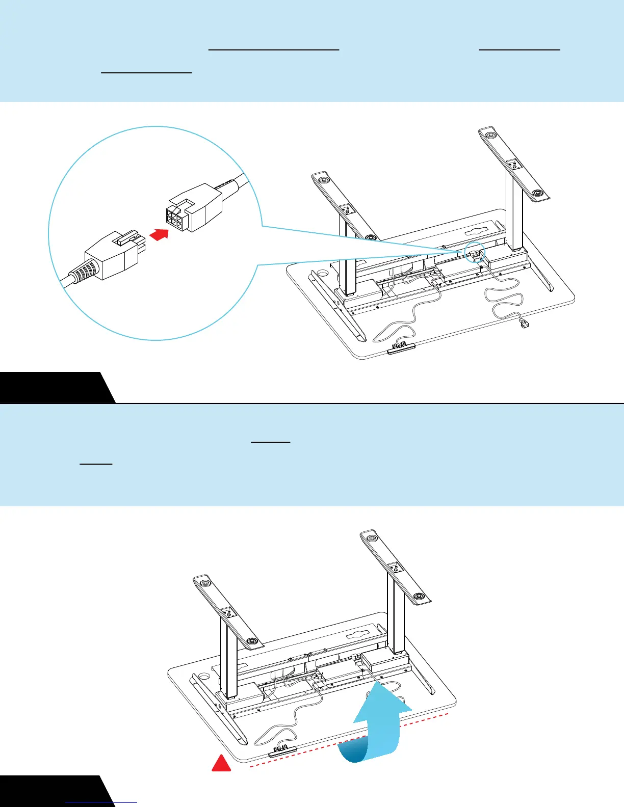 StandDesk PRO - Assembly Step 15: Connecting Leg Motors; Link Leg Motors; Assembly Step 16: Finalizing Assembly; Flip Desk Safely