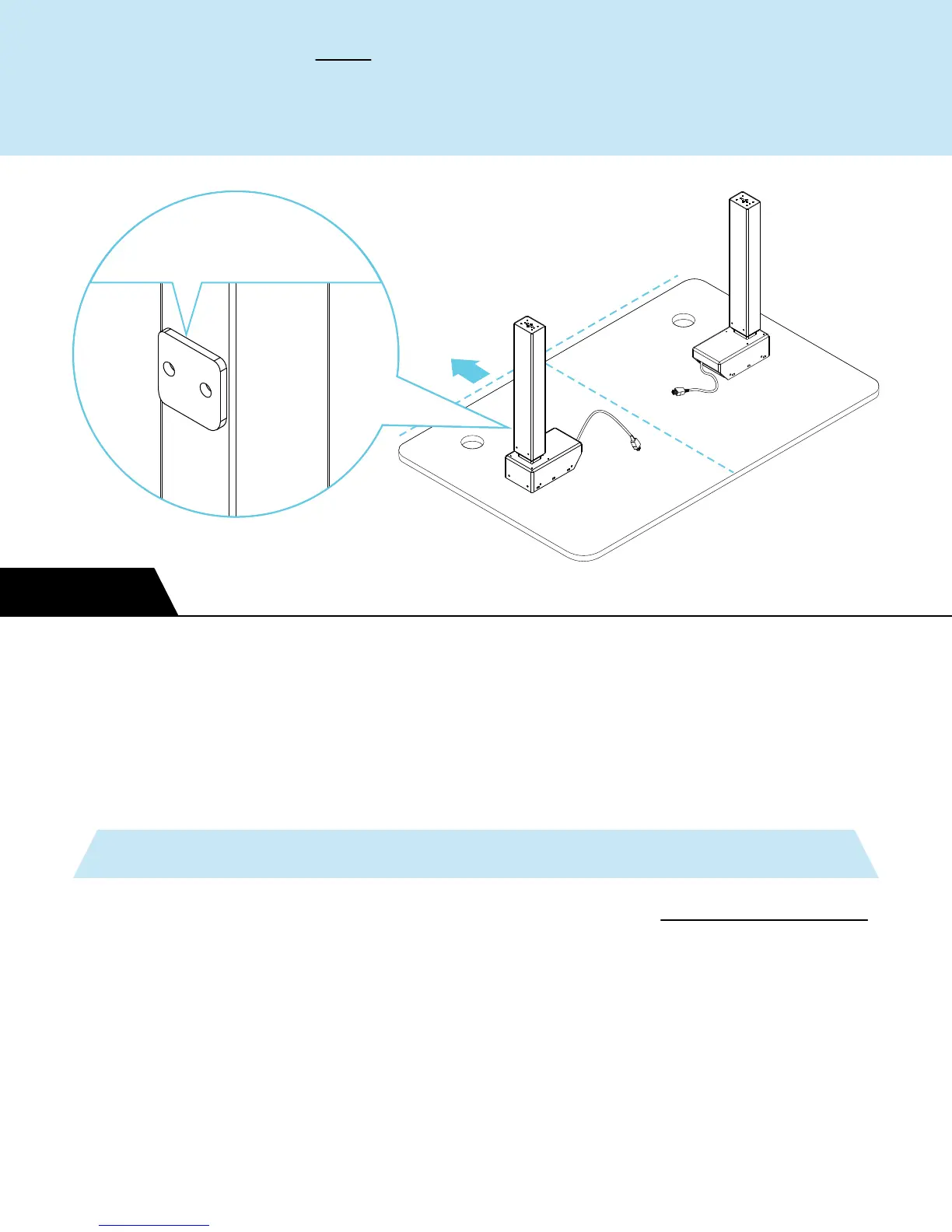 on the desk so they line up with the pre-drilled holes. It’ll