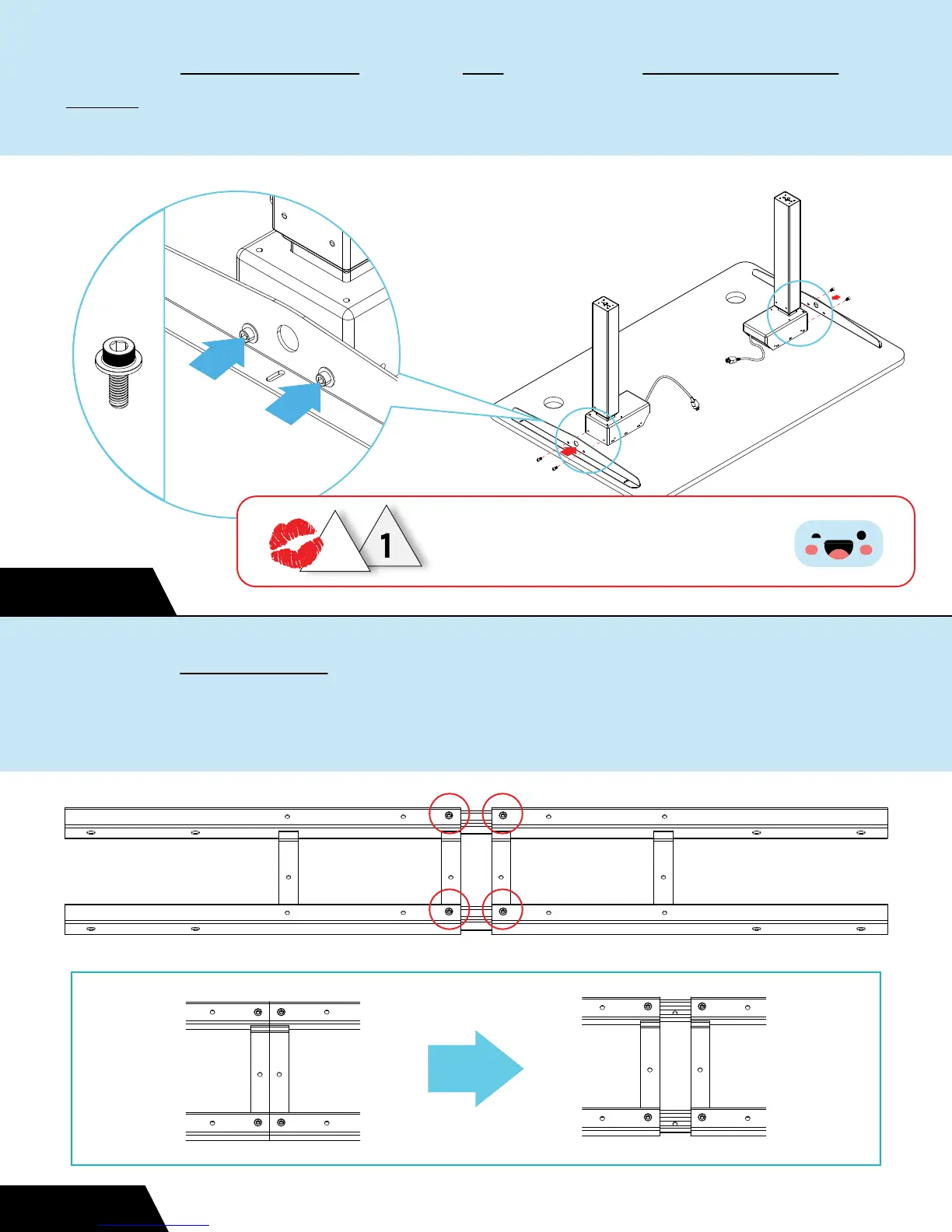 StandDesk PRO - Assembly Step 2: Attaching Support Braces; Secure Braces to Legs; Assembly Step 3: Adjusting Middle Slat; Slat Width Adjustment