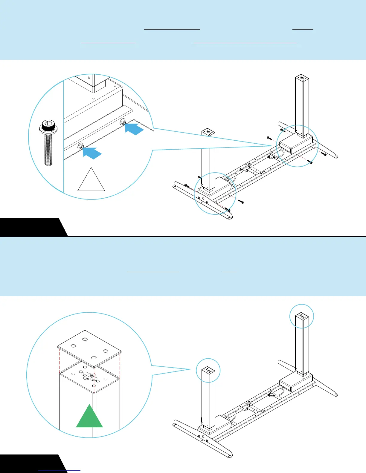 StandDesk PRO - Assembly Step 4: Connecting Middle Slat; Attach Slat to Legs; Assembly Step 5: Attaching Foot Plates; Mount Foot Plates to Legs