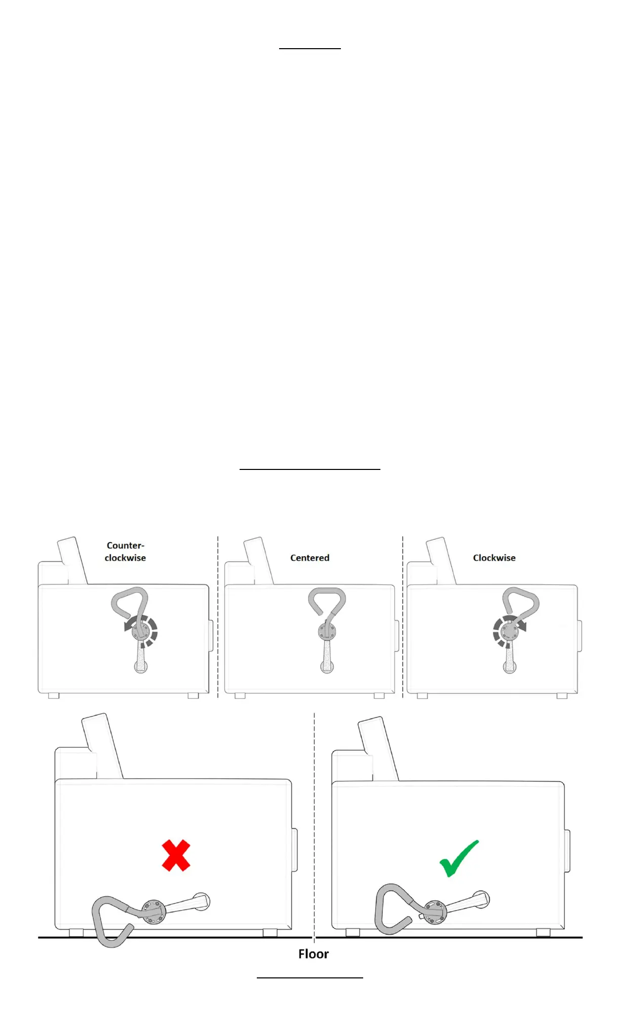 the floor. The product comes partially assembled in the Centered position, see the Assembly Positions in the diagram