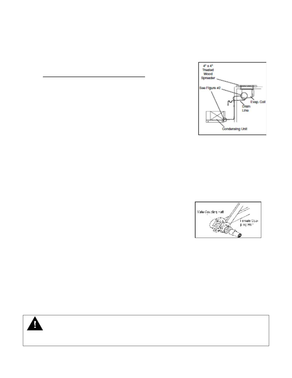 ● Uncrate the coil and through-bolt it to the ceiling of the walk-