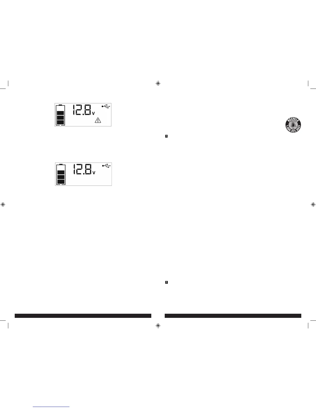 for 10 seconds (only) and will then continuously display the Battery Status Icon and the Battery Voltage Indicator.