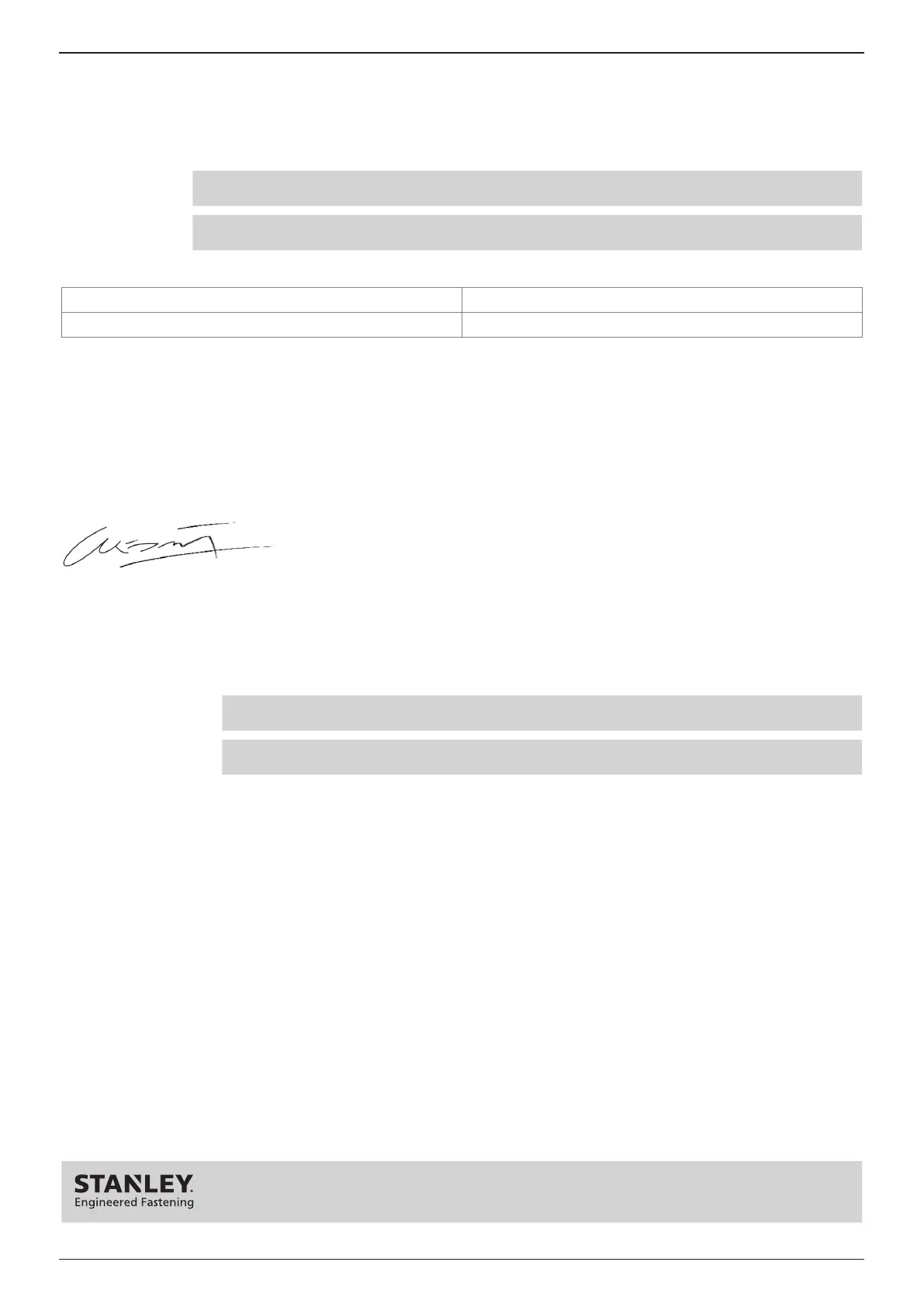 署名者は、欧州連合で販売されている製品の技術ファイルの編集に責任があり、Stanley Engineered Fasteningに代わ