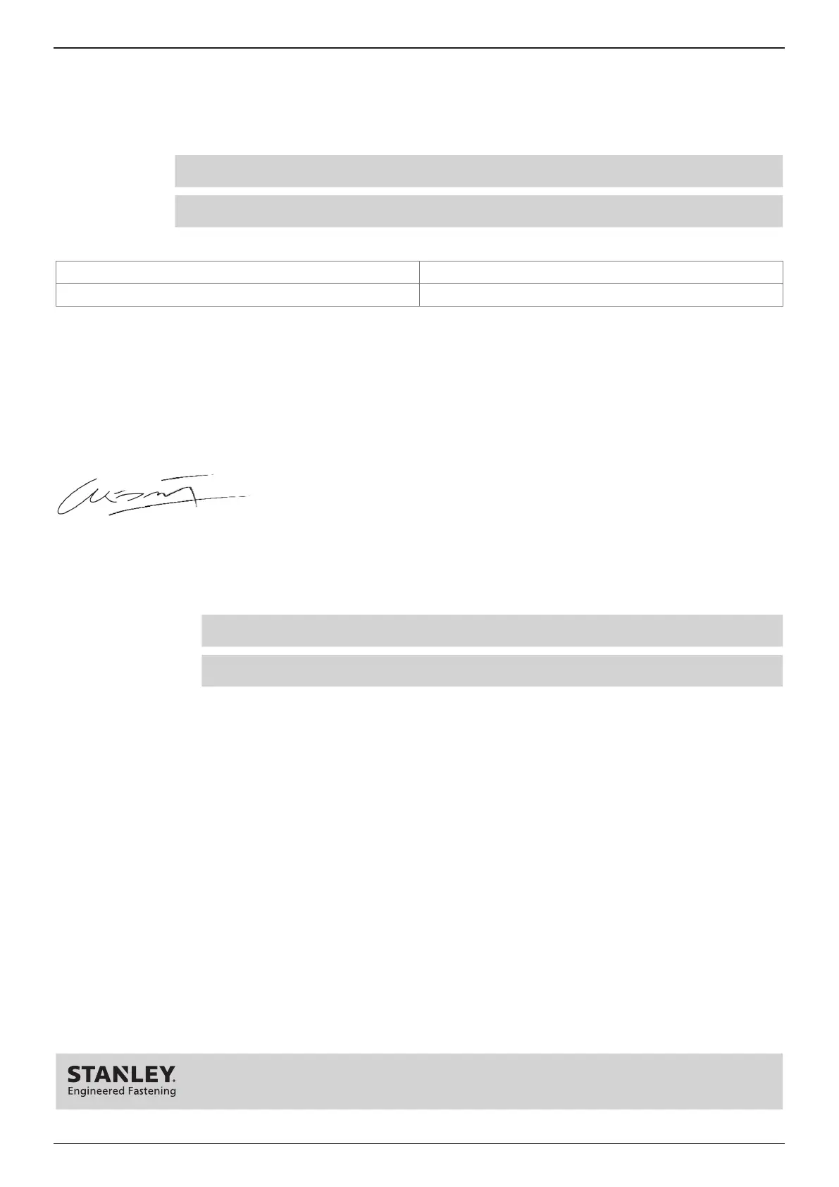 署名者は、STANLEY Engineered Fasteningを代表してこの宣言を行います