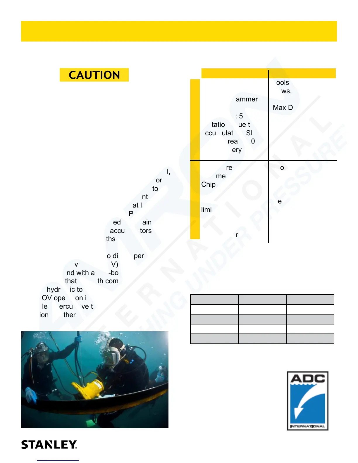 For underwater hydraulic tools the applications are