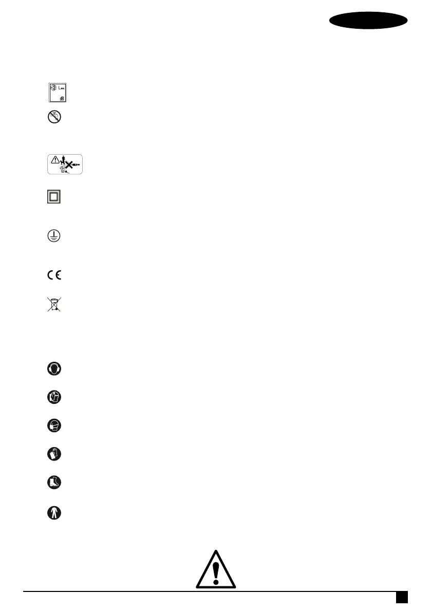 Symbol E1 - anger att maskinen inte får bortskaffas som hushållsavfall. Maskinen
