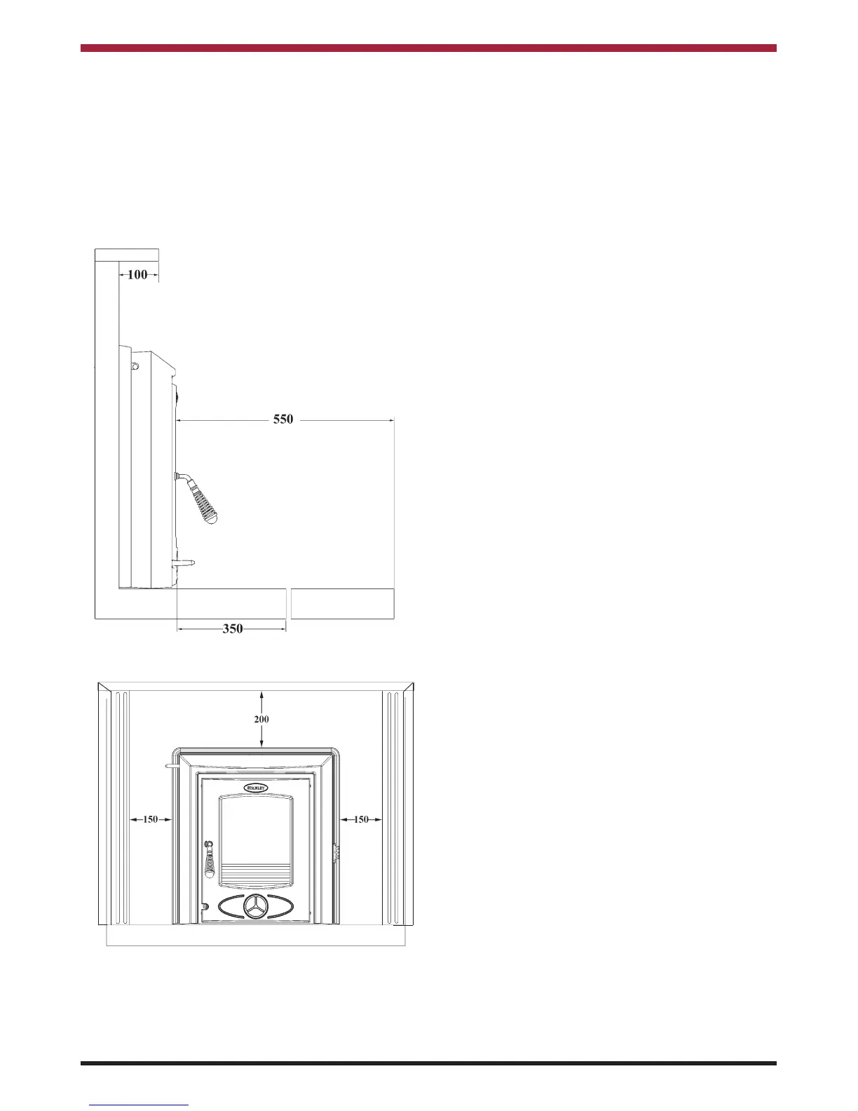 directly to the front and 350mm to any combustible
