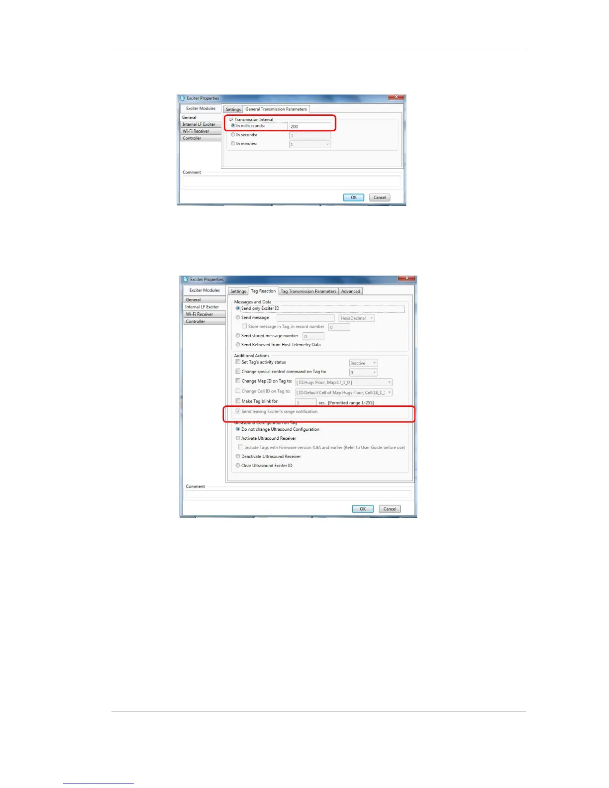 b. Ensure the Send leaving Exciters range notification option is unavailable.