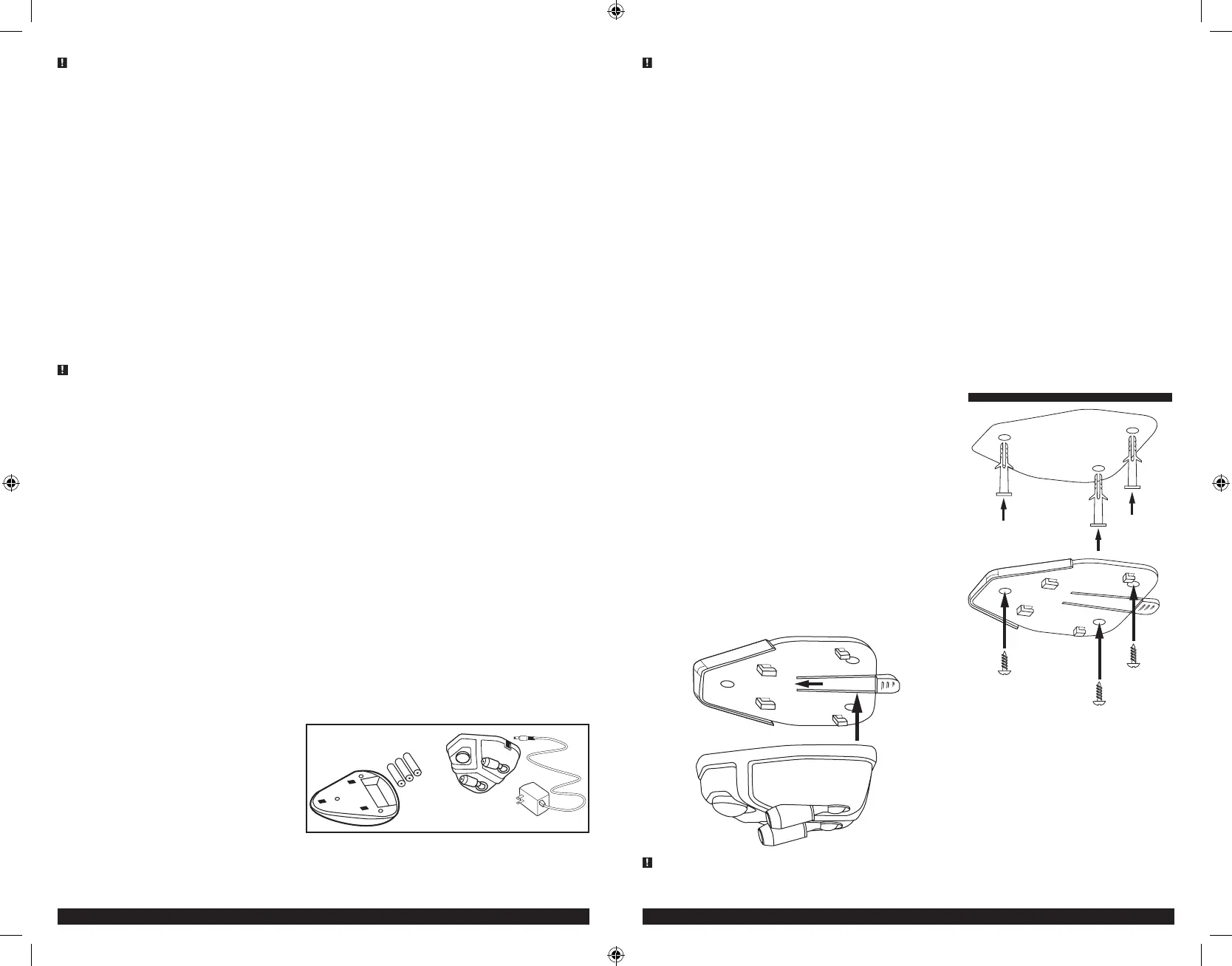 •Make sure the batteries are installed in the battery compartment BEFORE mounting the unit to the ceiling or a wall surface.