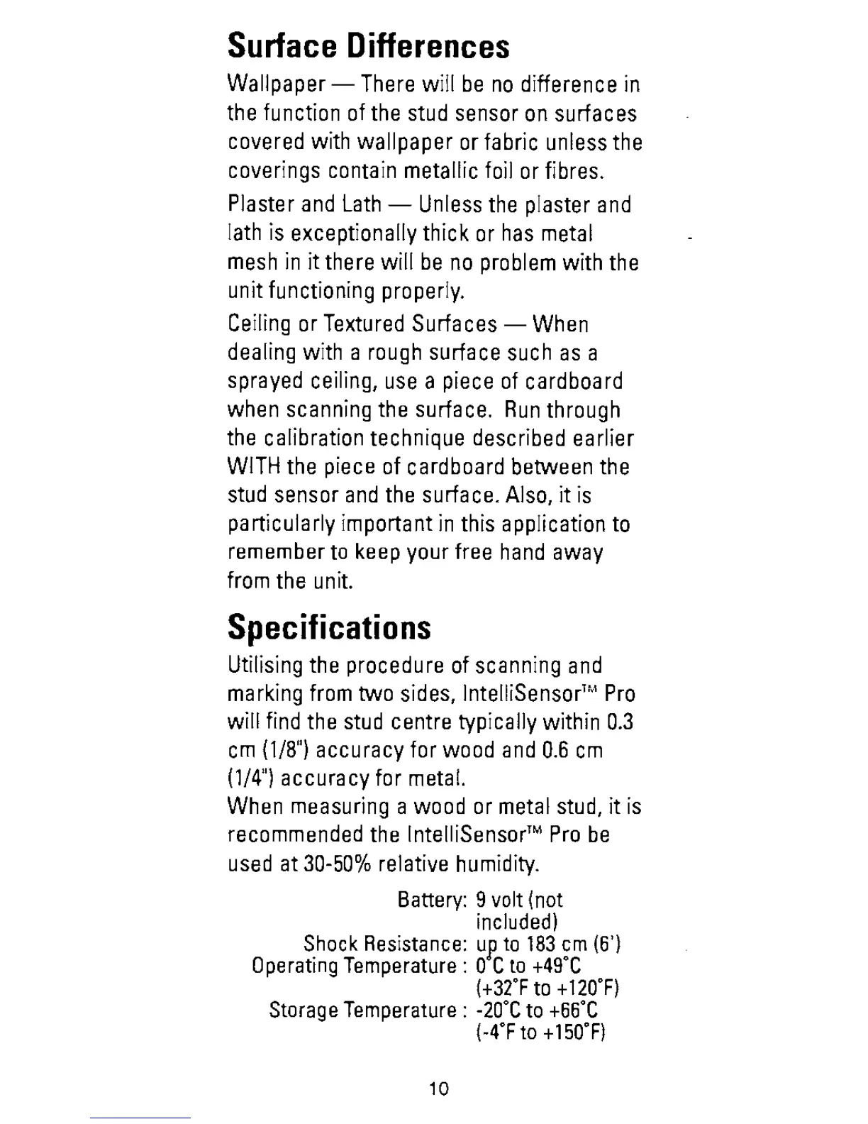 Stanley IntelliSensor Pro - Surface Differences and Specifications; Surface Condition Impact; Technical Specifications
