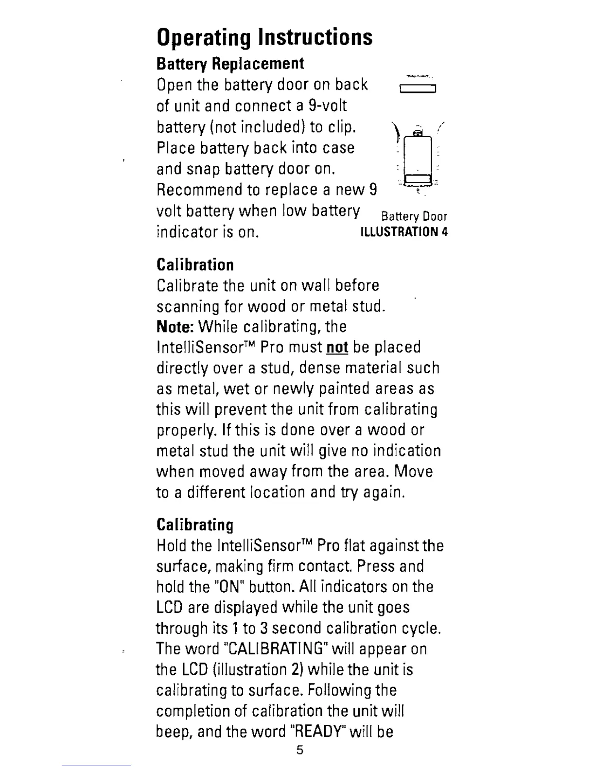 Stanley IntelliSensor Pro - Operating Instructions; Battery Replacement; Calibration Process