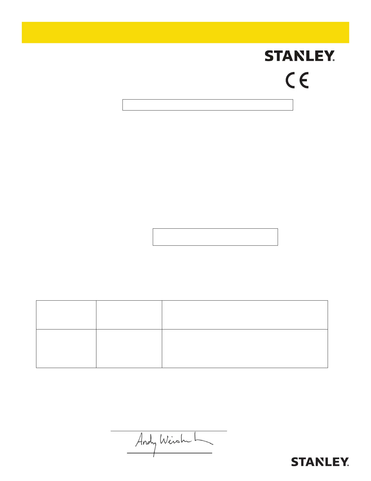 Done at/Ort/Fait à/Dado en/Fatto a Stanley Hydraulic Tools, Milwaukie, Oregon USA