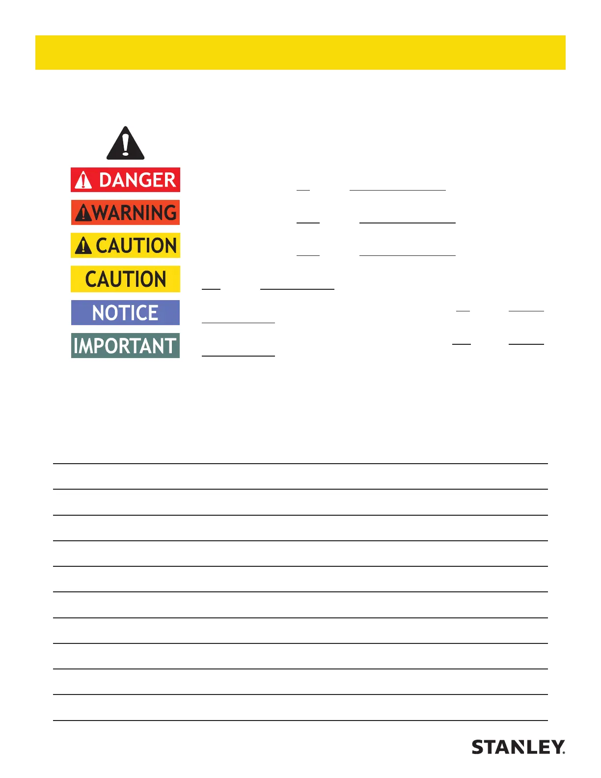 Safety symbols and signal words, as shown below, are used to emphasize all operator, maintenance and repair