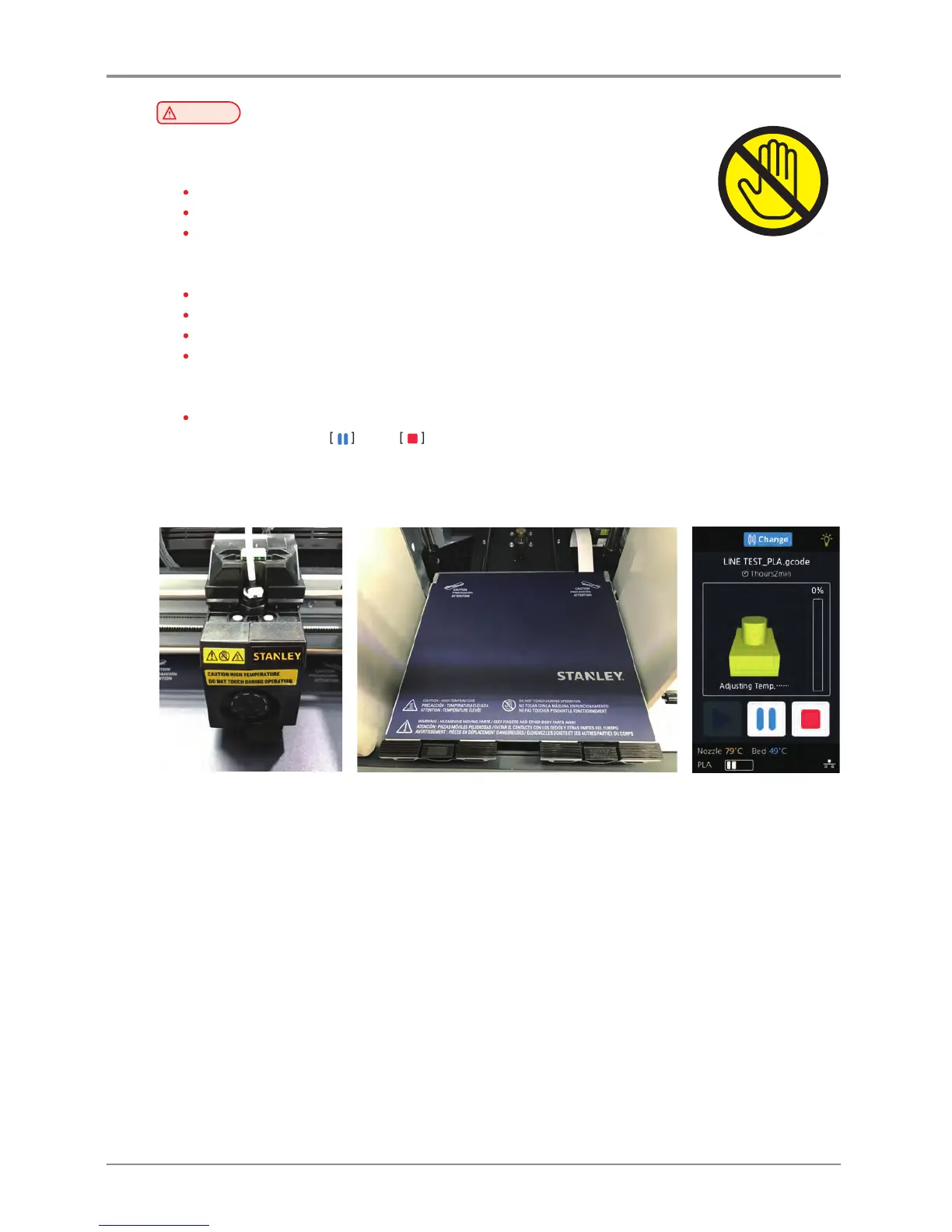 Do not put any portion of your body or objects during machine operation, as the bed, motor, nozzle will be in