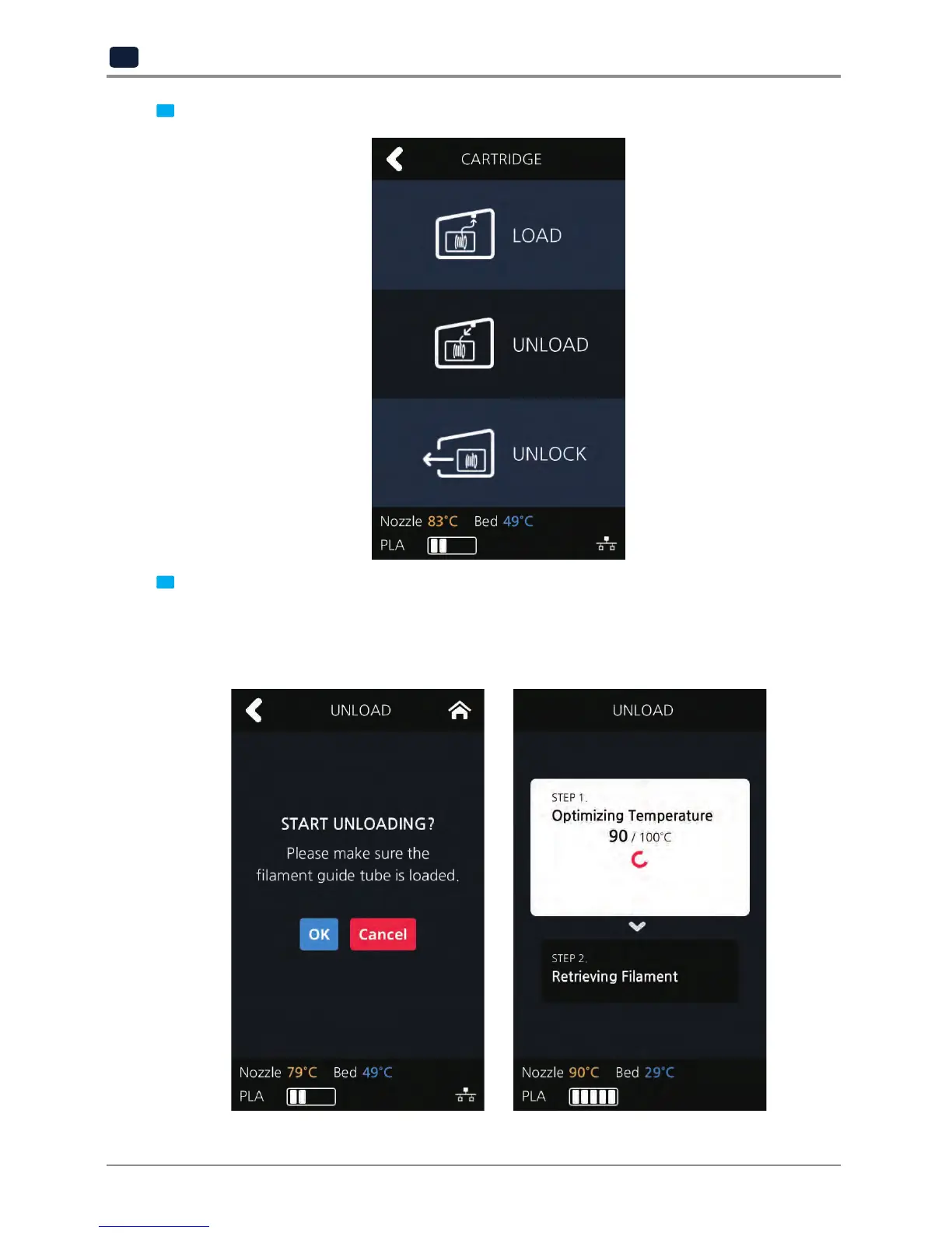 procceed. To remove filament, the nozzle is heated up to the specified temperature and the filament