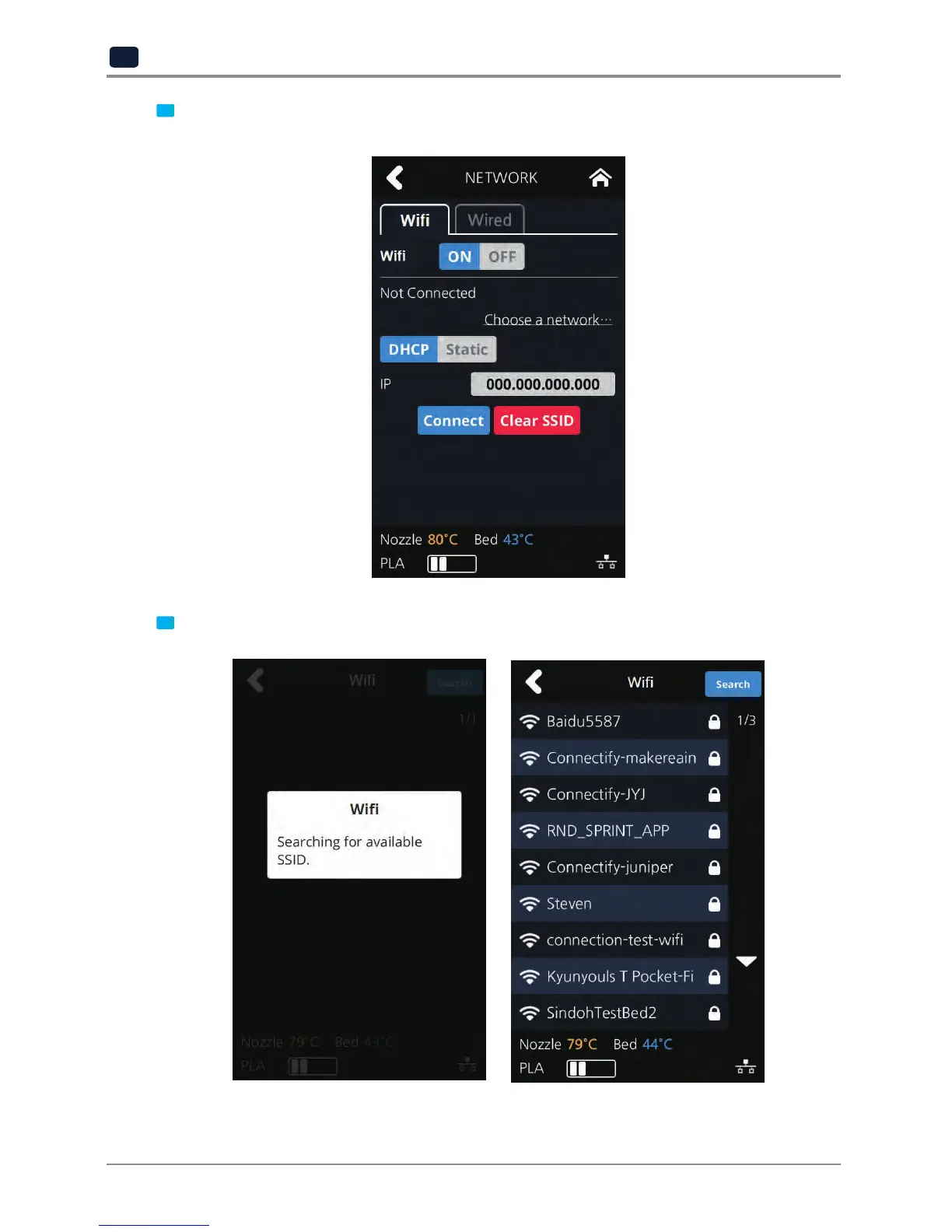 To select a Wifi network, click [Choose a network…] and the printer shows all available Wifi connections.
