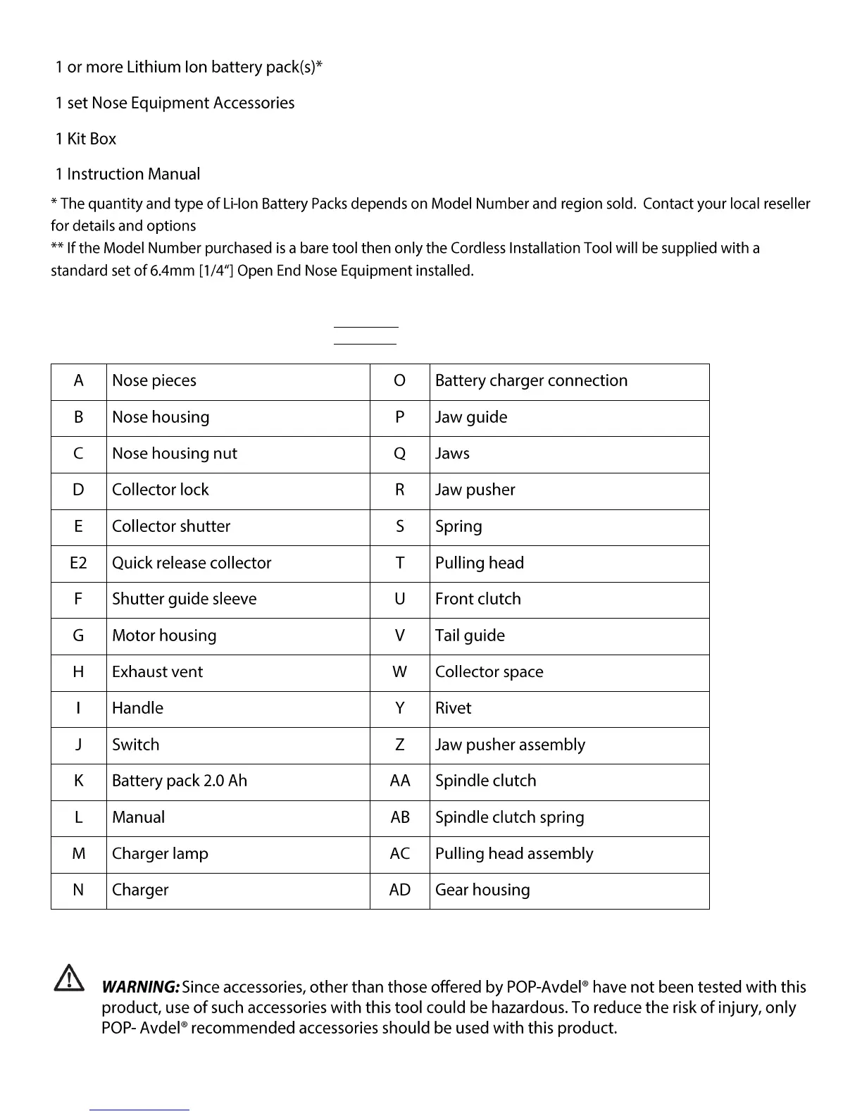 2.4 MAIN COMPONENTS LIST (for complete tool explosion and Bill of Material please see service manual)