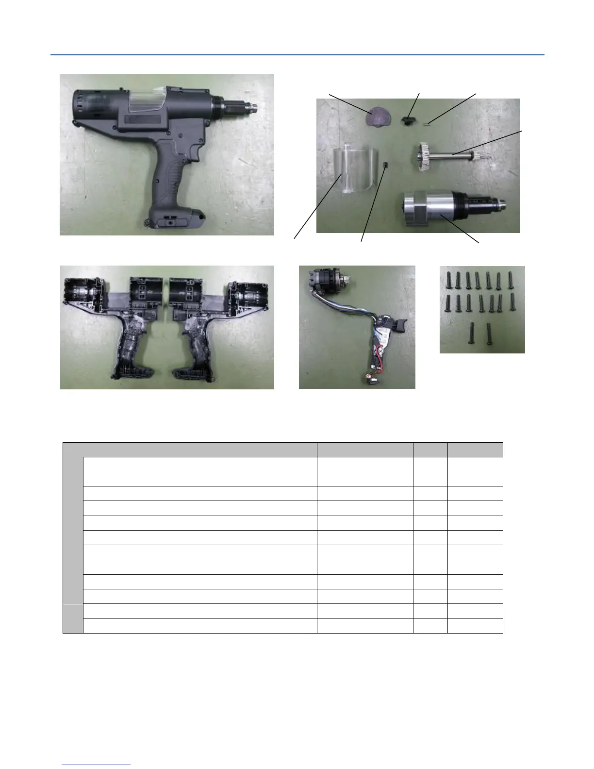 BOM for Main Unit Assembly