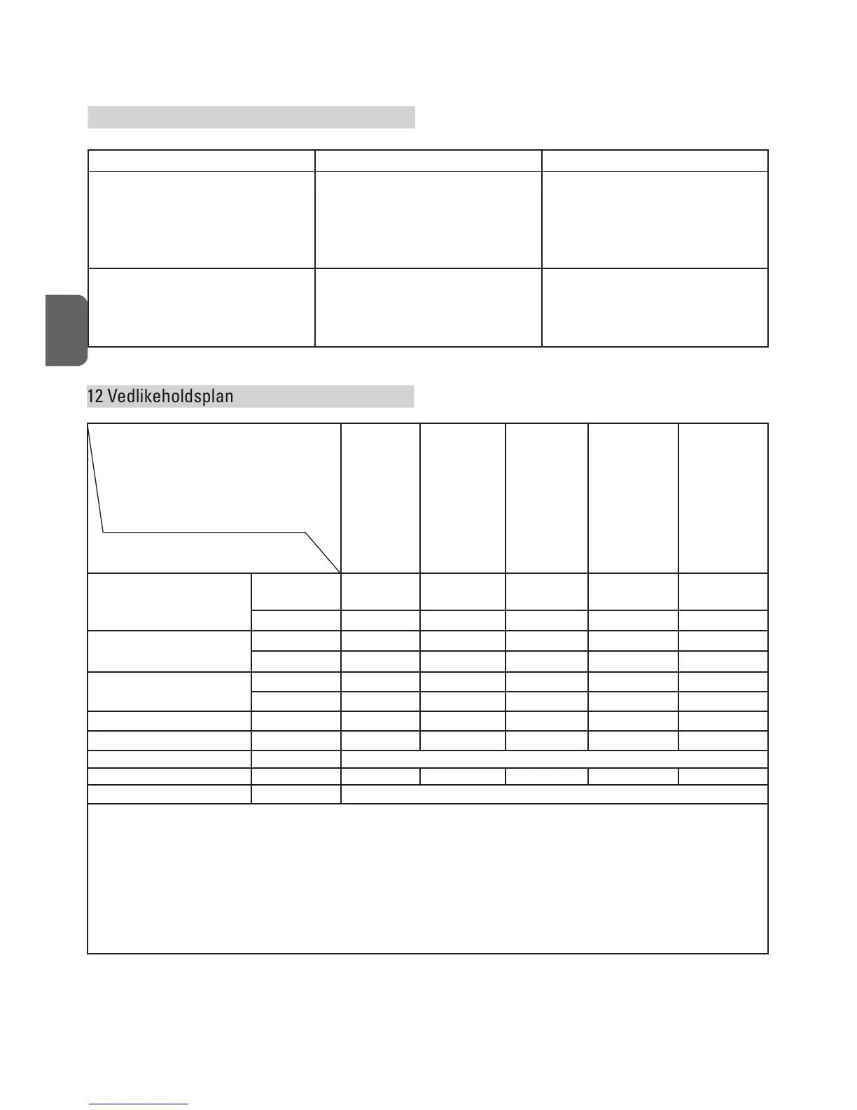 Dersom denne vedlikeholdsplanen ikke følges, kan det føre til feil som ikke dekkes av garantien.