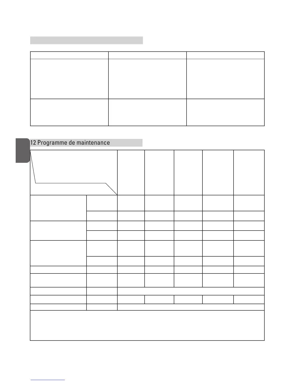 Le non respect de ce programme de maintenance pourrait entraîner des défaillances non couverte par la garantie.