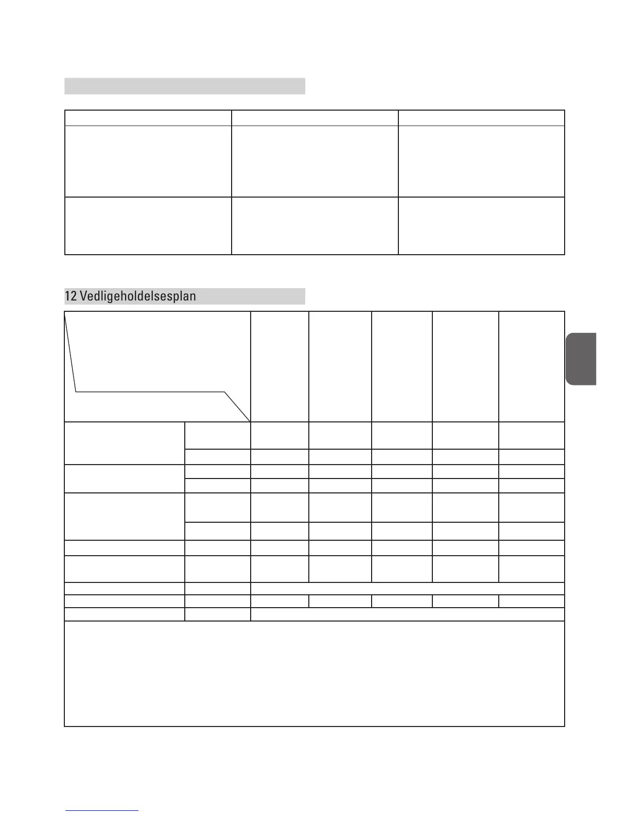 Manglende overholdelse af denne vedligeholdelsesplan kan resultere i fejl, som ikke er omfattet af garantien.