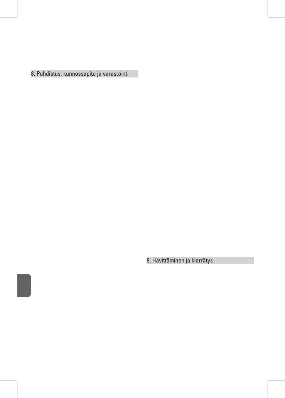 kuten metallista ja muovista. Vialliset osat tulee hävittää