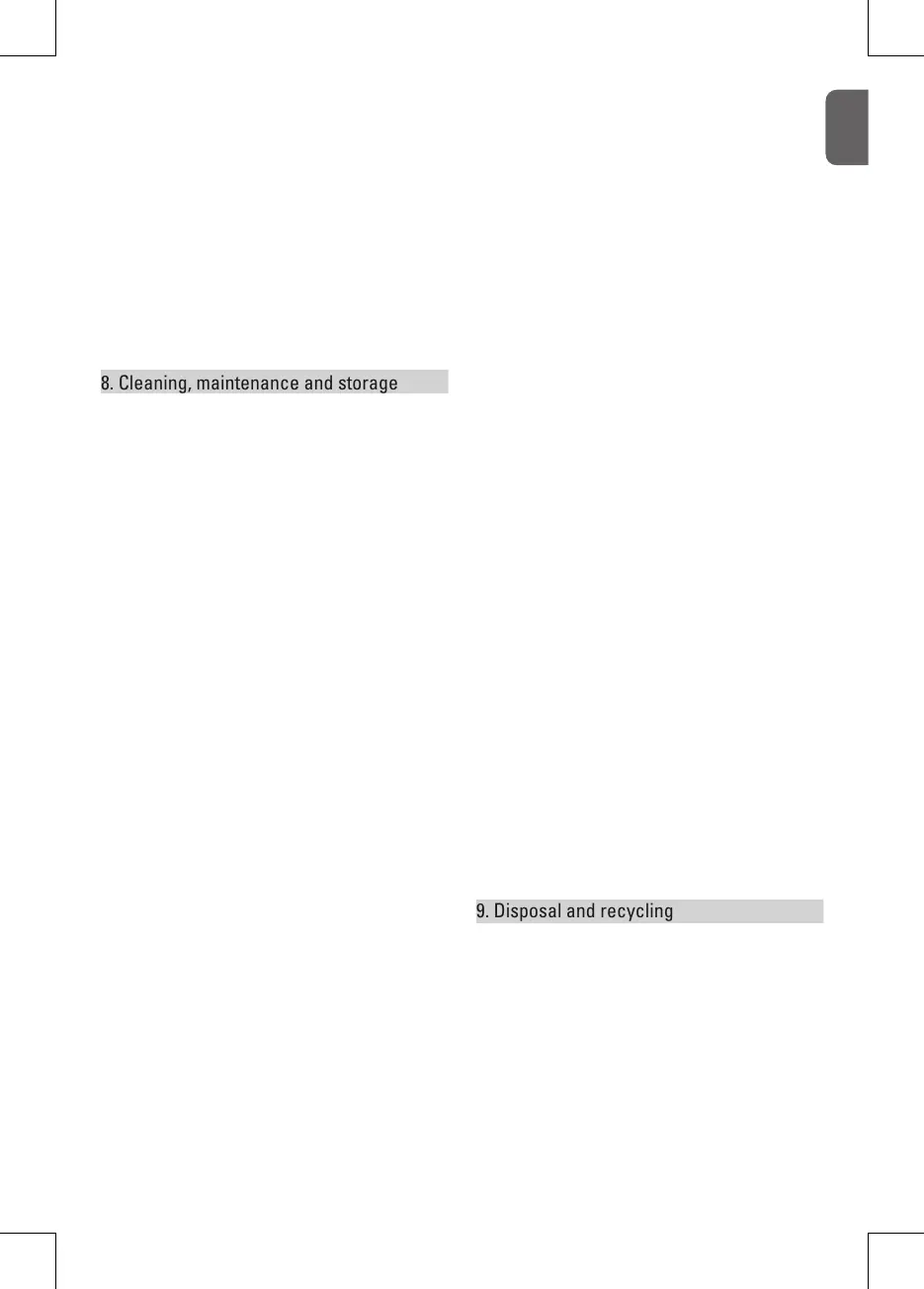 8. Cleaning, maintenance and storage