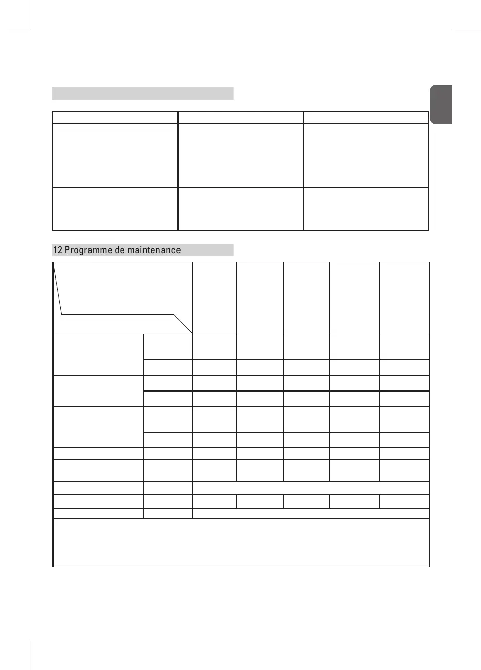 Le non respect de ce programme de maintenance pourrait entraîner des défaillances non couverte par la garantie.