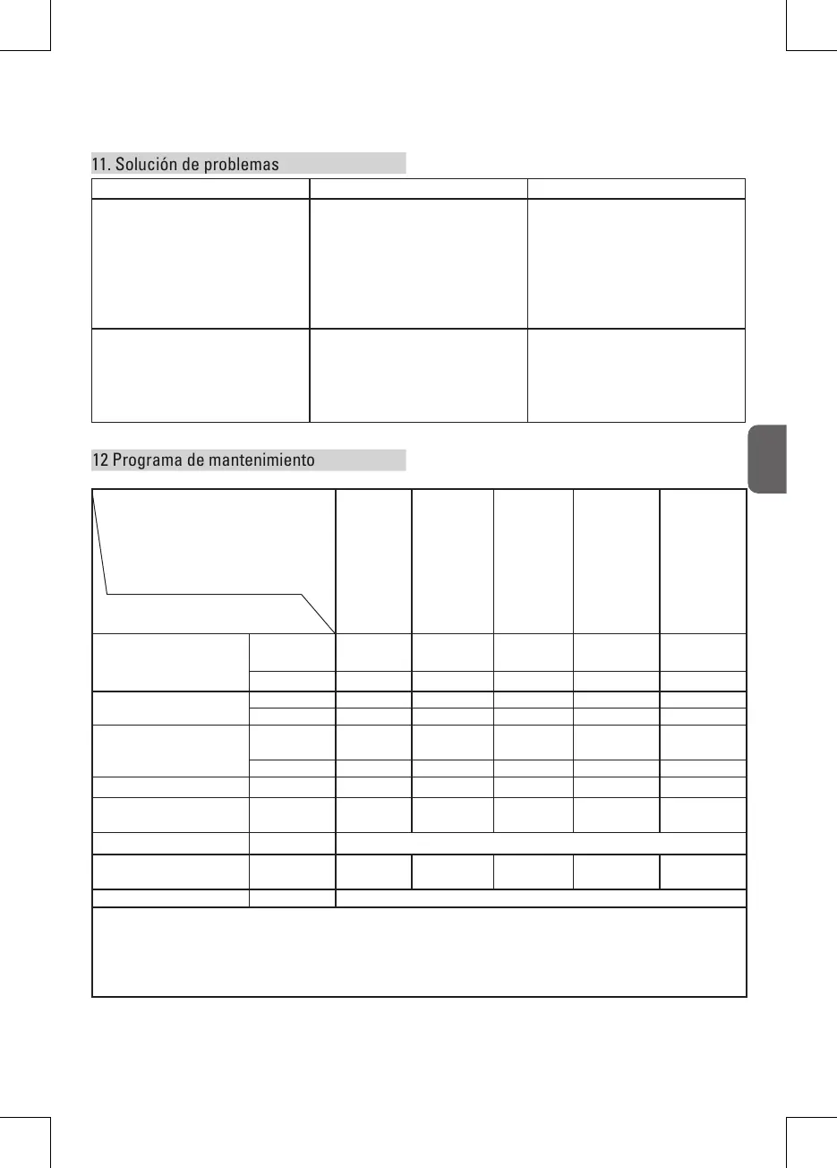 Si no sigue este programa de mantenimiento, se pueden producir averías no cubiertas por la garantía.