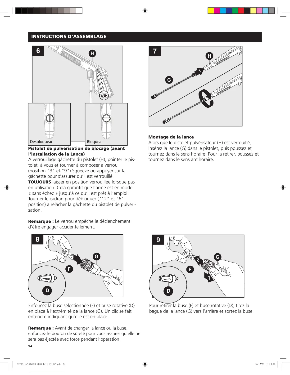 bague de la lance (G) vers l’arrière et sortez la buse.