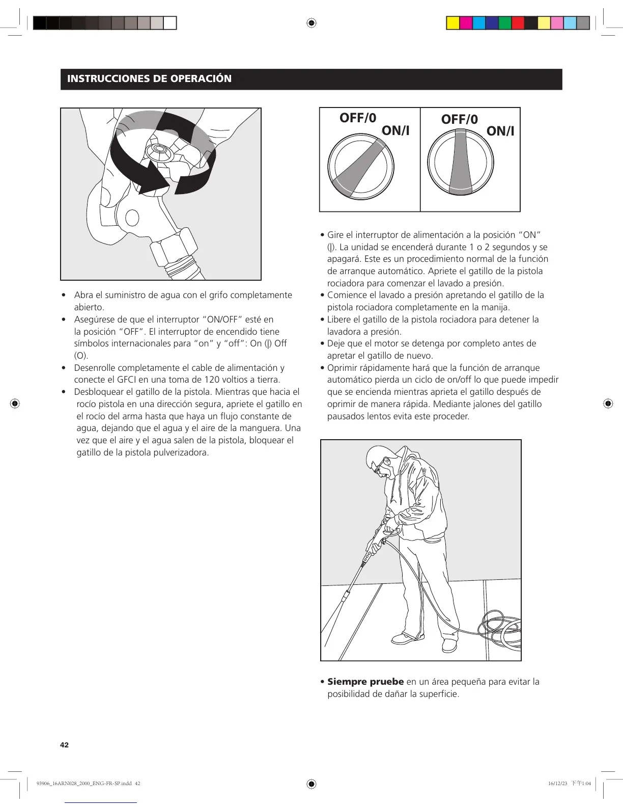 • Comience el lavado a presión apretando el gatillo de la