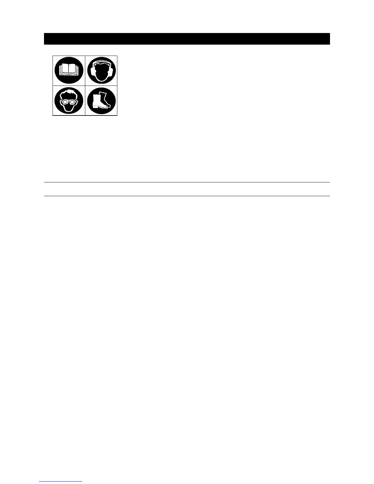 • Always wear safety equipment such as goggles, ear and head protection, and safety shoes at all times when