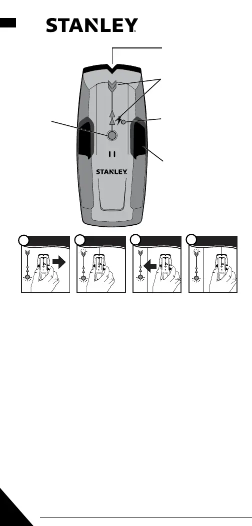 1) Hold the Stud Sensor 100 at against the surface, making rm contact.