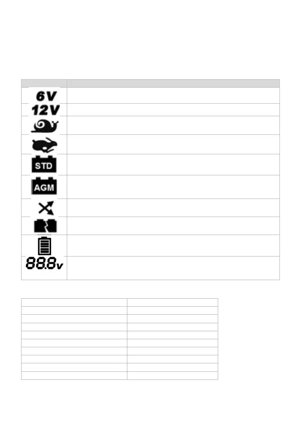 Pokazuje napięcie akumulatora, napięcie ładowania, wskaźnik „FUL” po