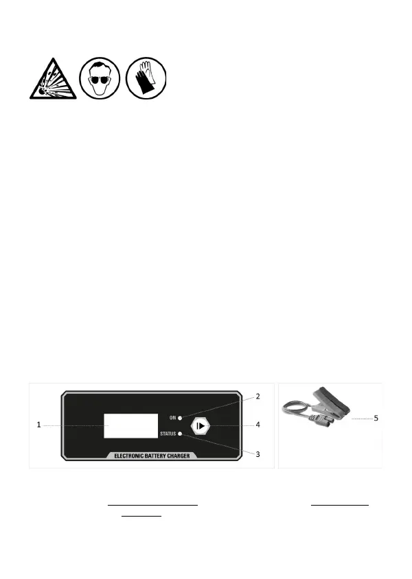 7. Per l'uso del caricabatteria, indossare indumenti, guanti e occhiali protettivi. Evitare di toccarsi gli