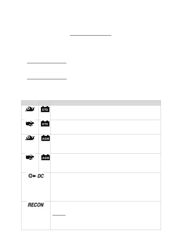 batteritypen samt ladestrøm på betjeningspanelet ved at trykke på valgknappen, når ikonet