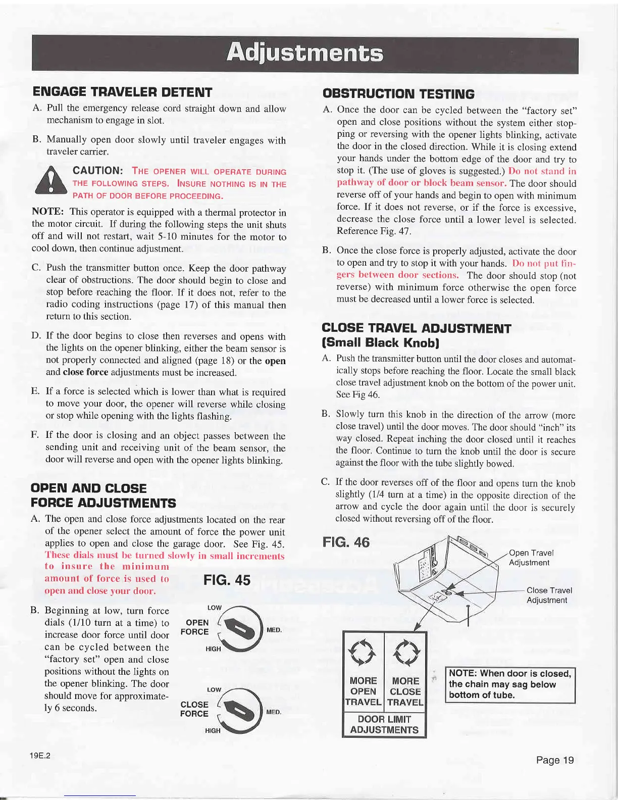 Stanley U-INSTALL - Adjustments and Settings; Traveler Detent Engagement; Open;Close Force Adjustments; Obstruction Testing Procedure