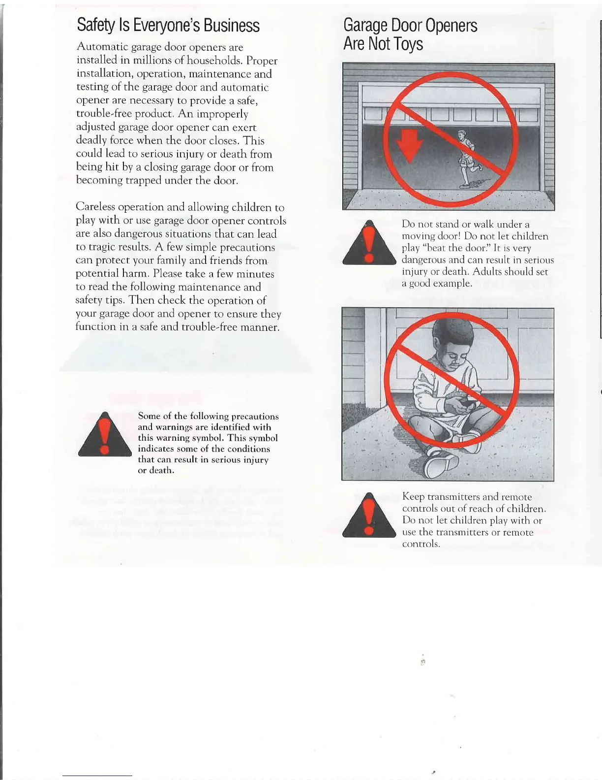Stanley U-INSTALL - Safety is Everyones Business; Safe Operation Practices; Garage Door Openers Are Not Toys; Child Safety Warnings