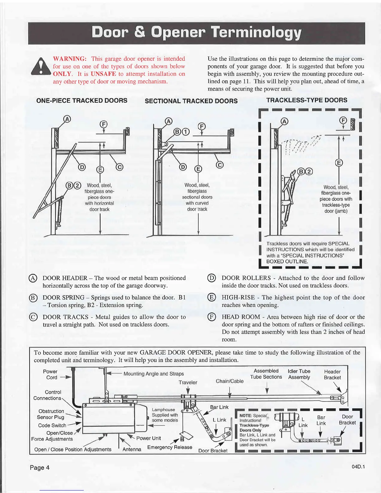door spring and the bottom ofrafters or finished ceilings.