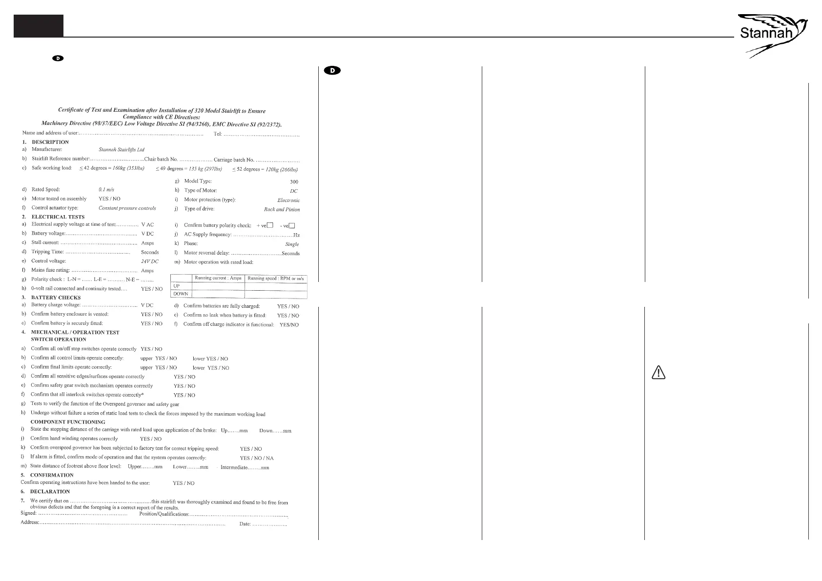 g) Bestätigen, dass der Treppenlift die